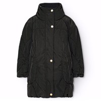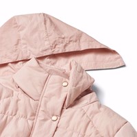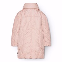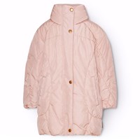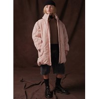 Vandafvisende rosa jakke i genanvendt nylon. Jakken har reglandsærmer, en flot silhuet med dens mange bløde linjer der giver den et sofistikeret look. Jakken er knælang, en opstående krave med integreret hætte, lynlås med overfald, der holder sne, vind og vand ude. Jakken har lommer fortil samt elastik i ærmeåbningen og i bunden som holder vind ude og holder bedre på varmen. Jakken er foret med Pearl Padding, et genanvendt polyesterfyld., der sikrer ensartet blødhed, optimal varme og let vedligeholdelse under vask. Jakkens vandafvisende overflade er fri for PFOS og PFOA.