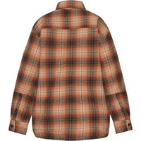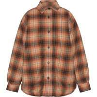 Ternet overshirt i orange og brune nuancer med knaplukning langs fronten og skjortekrave. Jakken er fremstillet i en kraftig bomuld, hvilket gør den velegnet som en let jakke i overgangsperioderne eller som et ekstra lag, når det er koldere.