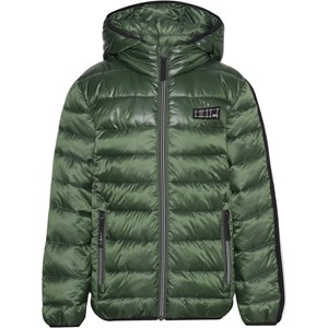 Hao er en grøn vinterjakke med stribet  lynlåslukning og stribe ned langs ærmerne. Jakken for er recycled og fremstillet af genanvendt polyester. Foret har en dunlignende følelse med ekstra blødhed og holder godt på varmen. Ydermaterialet har en vandafvisende PFC-fri imprægnering (indeholder f.eks. ikke PFOS, PFOA og lignende).