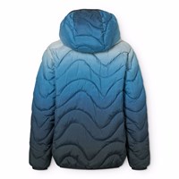 Vandafvisende vatteret jakke i genanvendt polyester i blå gradientfarver. Jakken har en aftagelig hætte, opretstående krave, lynlås med hagebeskytter og lynlåslommer på fronten.