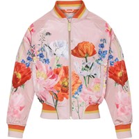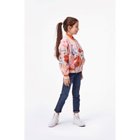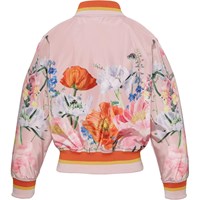 Happy er en sporty bomber jakke i lyserød med blomster print. Jakken har lommer i siden og stribet ribkant ved hals, bund og ærmeafslutning.