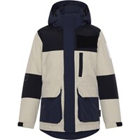 Harding er en beige, sort og blå jakke. Jakken har store lommer på fronten og en aftagelig hætte, samt store reflekser på både siden og bagsiden af jakken. Jakken er vind- og vandtæt med en åndbar membran og tapede syninger ved nakke, armhuler og skuldre. Ydermaterialet er 100% recycled og fremstillet af genanvendte plastiskflasker. Ydermaterialet har desuden en vandafvisende PFC-fri imprægnering (indeholder f.eks. ikke PFOS, PFOA og lignende). Vandsøjletryk: 10.000 mm. Åndbarhed: 8.000 g/m2/24t.
