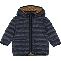 Harmony er en blå baby jakke med brunt inderfor og kantbånd. Jakken har aftagelig hætte og er foret med recycled pearl padding, som giver ekstra blødhed, holder godt på varmen og har en dunlignende følelse. Ydermaterialet har en vandafvisende PFC-fri imprægnering (indeholder f.eks. ikke PFOS, PFOA og lignende).