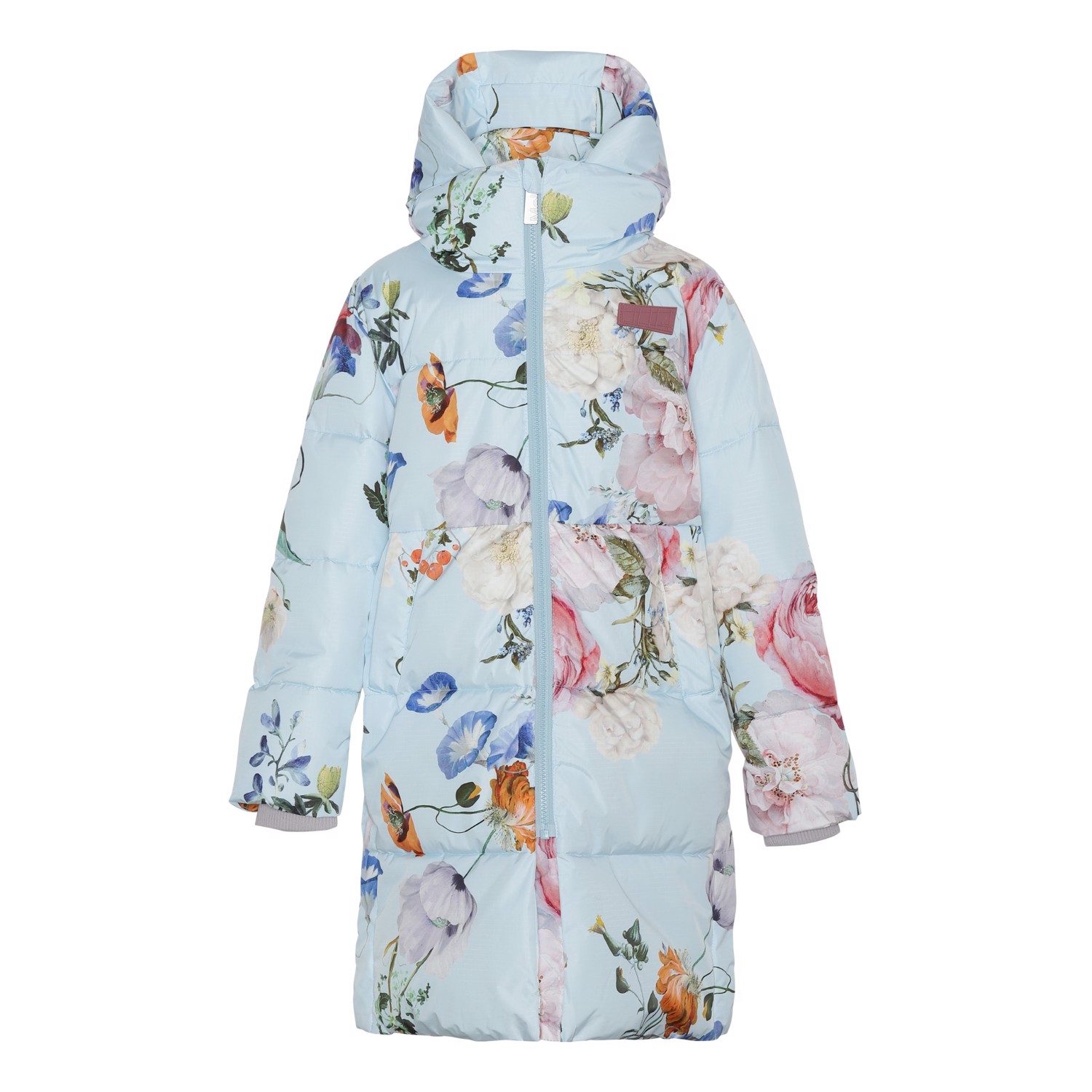 Harper er en dejlig varm og lang frakke i lyseblå med blomster print. Jakken har hætte, lommer med lynlås på fronten, samt refleks på bagsiden. Harper er foret med teknisk dun, kaldet pearl padding, som giver ekstra blødhed, holder godt på varmen og har en dunlignende følelse. Dette produkt har en vandafvisende PFC-fri imprægnering (indeholder f.eks. ikke PFOS, PFOA og lignende). Vandsøjletryk: 5.000 mm. Åndbarhed: 5.000 g/m2/24t.