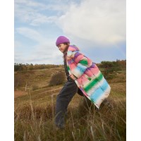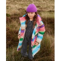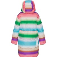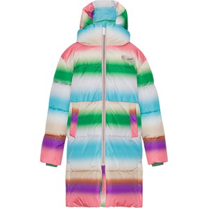 Varm og blød dynefrakke med god længde. Frakken er en del af Molo’s 'Everyday Exploration’, som er overtøj til hverdagens mange eventyr og som samtidig skiller sig ud med flotte detaljer eller farverige prints. Frakken er selvfølgelig også produceret ved brug af ansvarlige og genanvendte materialer og lever derved op til Molo’s høje standarder for overtøj. Her er Harper i pastelfarvet regnbueprint.