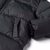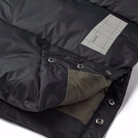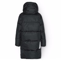 Sort varm dynejakke til en kold vinter i genanvendt polyester. Jakken går til over knæet, har en aftagelig hætte, lommer i siden samt ærmerne er udstyret med ribkanter, der effektivt holder vind, sne og regn ude og samtidig sikrer, at vanterne forbliver på plads. Jakken er udstyret med høje slidser på begge sider, som kan lukkes med trykknapper, det sikrer en stor bevægelsesfrihed, samt gør det nemt at cykle i jakken. Jakken har en stor refleks bagpå, for større synlighed i trafikken.
