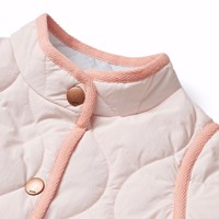 Lyserød vandafvisende termojakke i genanvendt nylon med flot quiltet mønster. Jakken har en almindelig pasform, sidelommer, knaplukning på fronten samt matchende kantbånd hvilket giver en flot finish.