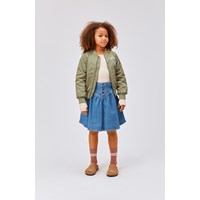 Hatty er en grøn bomber jakke med fint broderi på ryggen af forskellige dyr, samt teksten ´Wonderous World´. Jakken har ribkant ved halsen, bund og ærmeafslutning.