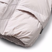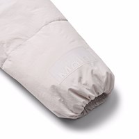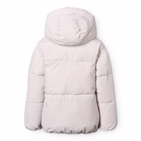 Lys vandafvisende jakke fremstillet i genanvendt nylon. Jakken har en aftagelig hætte og en lynlås med overfald, der effektivt beskytter mod sne, vind og regn. Den har praktiske lommer foran samt elastik i ærmer og ben, som hjælper med at holder vinden ude. Jakken er foret med et genanvendt polyesterfyld, der giver jævn blødhed samt optimal varmeisolering.