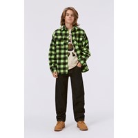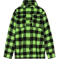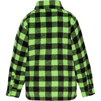 Neongrøn og sort ternet overshirt med knaplukning langs fronten, to store brystlommer og skjortekrave. Jakken er fremstillet i en blød uldblanding, hvilket gør den velegnet som en let jakke i overgangsperioderne eller som et ekstra lag, når det er koldere.