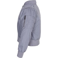 Sporty, grå bomber jakke med lynlås ned langs fronten, lommer i siden og på det ene ærme samt rib ved hals og bund. Dette produkt har en vandafvisende PFC-fri imprægnering (indeholder f.eks. ikke PFOS, PFOA og lignende).
