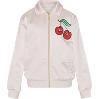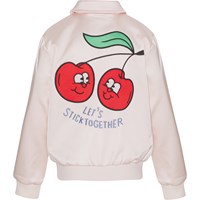Hazel er en lyserød bomber jakke med flot broderi på ryggen af kirsebær og teksten "Let´s stick together´. Jakken har ribkant ved både hals, håndled og hofte.