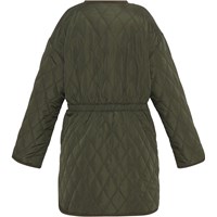 Hedvig er en quiltet frakke, der kan bruges på 2 forskellige måder. Hedvig er mørkegrøn og har et blomstret foer, i grønne, orande og lyserøde nuancer, som kan vendes udaf. På den måde fårman 1 frakke med 2 looks.