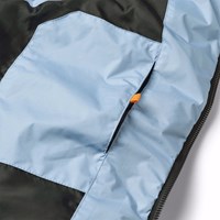 Varm vest til de koldere dage i genanvendt polyester, med et print af snedækket alper, solens skær og en klar på himmel. Vesten har en opretstående krave, lynlås fortil og store ærmegab, som gør det muligt at have en jakke eller en tyk trøje inden under. Vesten har en stor refleks bagpå, for større synlighed i trafikken samt en justerbar indevendig elastik i bunden som hjælper med at holde vinden ude.