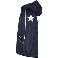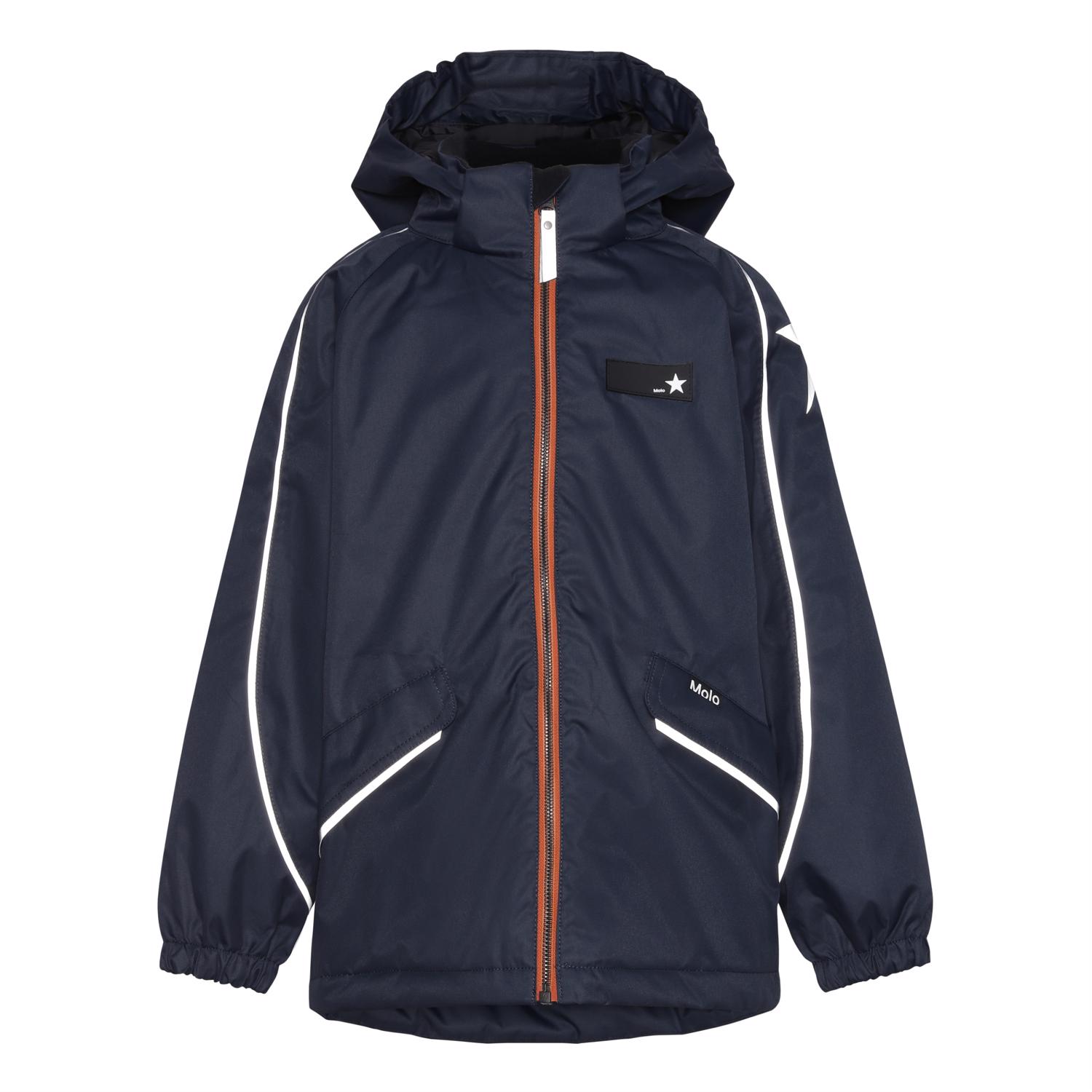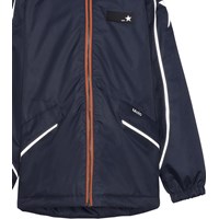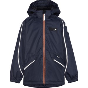 Heiko er Molo's nye unisex jakke i mørkeblå. Jakken har refleks pipings og Molo's velkendte stjerne reflekser på både siden og bagsiden af jakken. Der er mulighed for at snøre jakken ind i livet og give den mere facon. Heiko er både vind-, vandtæt og åndbar, samt har tapede syninger. Jakkens for og inderstoffet er 100% recycled og fremstillet af genanvendte plasticflasker. Dette produkt har en vandafvisende PFC-fri imprægnering (indeholder f.eks. ikke PFOS, PFOA og lignende). Vandsøjletryk: 12.000mm. Åndbarhed: 8.000 g/m2/24t.