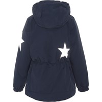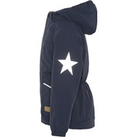 Heiko er Molo's nye unisex jakke i blå. Heiko er en del af Molo’s Outdoor-Proof linje, som er fremstillet til det aktive barn. Jakken er perfekt til kolde vinterdage uden voldsomme, tocifrede minusgrader. På dage med en høj windchill-faktor kan du supplere Heiko med en varm fleecetrøje eller lignende under. Jakken har refleks pipings og Molo's velkendte stjerne reflekser på både siden og bagsiden af jakken. Der er mulighed for at snøre jakken ind i livet og give den mere facon. Heiko er både vind-, vandtæt og åndbar, samt har tapede syninger. Jakkens for og inderstof er fremstillet af 100% genanvendt polyester. Dette produkt har en vandafvisende PFC-fri imprægnering (indeholder f.eks. ikke PFOS, PFOA og lignende). Vandsøjletryk: 10.000mm. Åndbarhed: 8.000 g/m2/24t.
