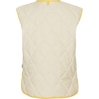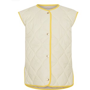 Heisley er en lysegul quilted vest med gule kontrast kanter. Vesten har knappelukning på fronten.
