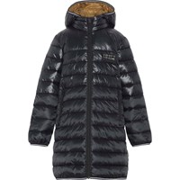 Helin er en lang frakke i sort med aftagelig hætte. Jakken har lynlås lukning og lynlås lommer på fronten. Jakken er foret med recycled peral padding, som har en dunlignende følelse med ekstra blødhed og som holder godt på varmen.