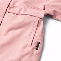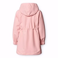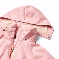 Lyserød vind- og vandtæt jakke i genanvendt polyester. Jakken har en aftagelig hætte, sidelommer med lommeklapdetaljer, vindstolpe ved lynlåsen samt elastik og justerbar velcro ved håndleddene, der effektivt holder vinden ude. Indvendigt har den en justerbar elastik i taljen, så jakkens silhuet og pasform kan justeres.