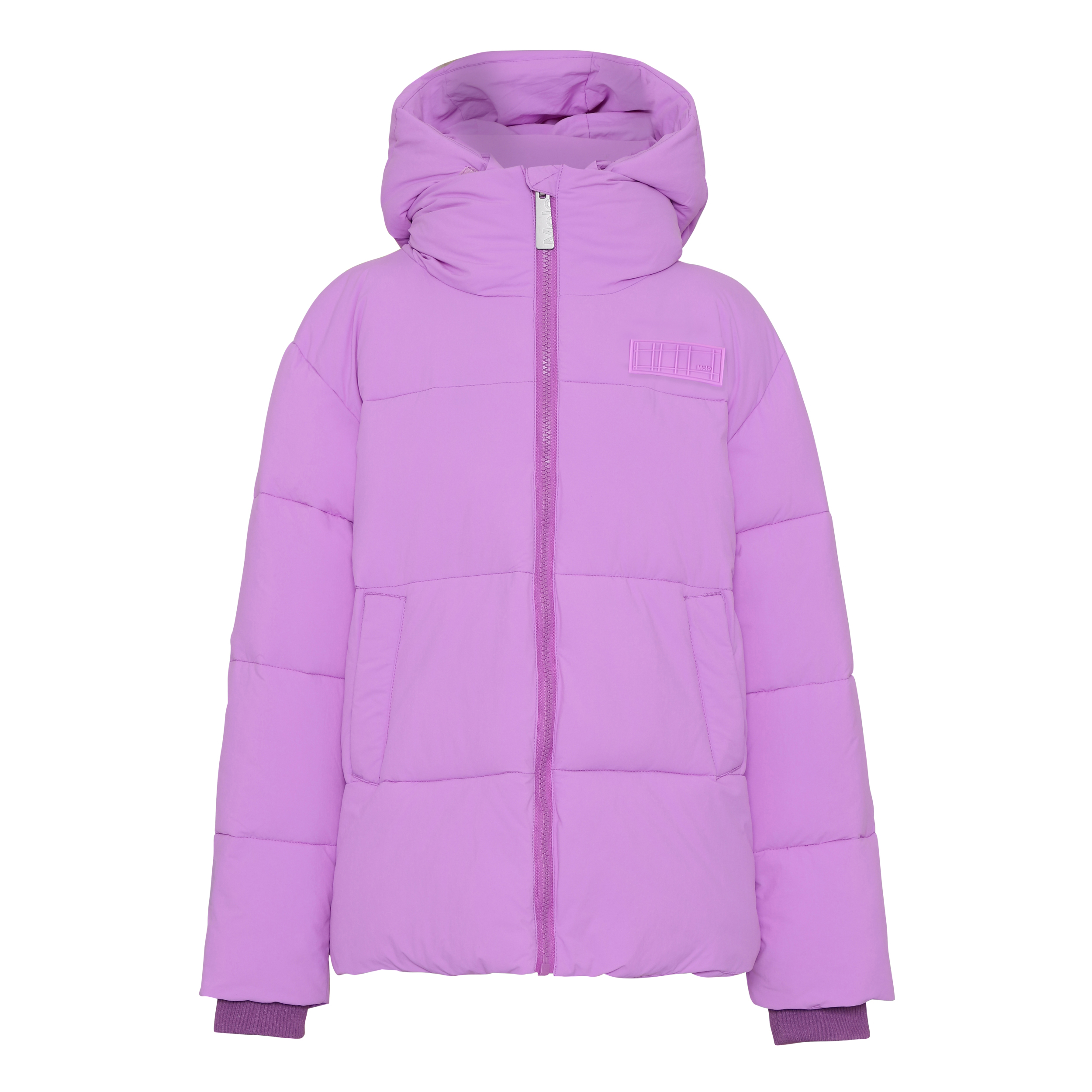 Hilo er en praktisk vinterjakke i lilla, som er fremstillet af 59% recycled nylon fra rest affald. Jakken har hætte, lommer med lynlås på fronten, samt refleks på bagsiden. Jakken er foret med pearl padding, som giver ekstra blødhed, holder godt på varmen og har en dunlignende følelse. Yder materialet har en vandafvisende PFC-fri imprægnering (indeholder f.eks. ikke PFOS, PFOA og lignende).