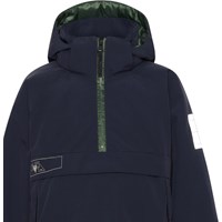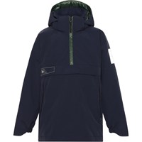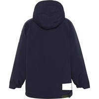 Holden er en mørkeblå anorak med stor lomme på fronten og grøn lynlås lukning ved halsen. Jakken er vind- og vandtæt med en åndbar membran og tapede syninger ved nakke, armhuler og skuldre. Jakken har store synlige reflekser både på siden og på bagsiden. Ydermaterialet er 100% recycled og fremstillet af genanvendte plastiskflasker. Ydermaterialet har desuden en vandafvisende PFC-fri imprægnering (indeholder f.eks. ikke PFOS, PFOA og lignende). Vandsøjletryk: 10.000 mm. Åndbarhed: 8.000 g/m2/24t.