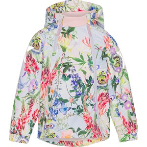 Hopla er en af Molo's klassikere med et anorak look, her i en let sommerudgave i lyseblå med blomster print. Jakken har en aftagelig hætte, skrå lynlåse, samt justerbar bund og Molo's velkendte refleksstjerne på siden af begge ærmer og bagpå. Jakken passer til det meste vejr på grund af sin vandtæthed og gode åndbarhed. Sømmene er også tapede. Produktet har en vandafvisende PFC-fri imprægnering (indeholder f.eks. ikke PFOS, PFOA og lignende). Vandsøjletryk: 5.000 mm. Åndbarhed: 5.000 g/m2/24t.