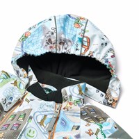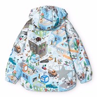 Vind- og vandtæt vinterjakke i genanvendt polyester med et pixeleret print af den virkelige verden, sjove figurer fra Molo's kollektioner samt en masse spændende historier, der er sjove at studere i det farverige univers. Jakken har en aftagelig foret hætte, to lynlåse på fronten med indvendigt overfald samt en ribkant som hagebeskytter for at undgå, at huden kommer i klemme. Jakken er udstyret med refleksbånd på ærmerne, ryggen og hætten samt to refleksstjerner, som sikrer synlighed i trafikken. Ærmerne har en elastikkant, der effektivt holder vind, sne og regn ude og samtidig sikrer, at vanterne bliver på plads. Desuden er jakken foret med genanvendt polyesterfleece, 3M™ Thinsulate™, som hjælper med at holde på varmen.