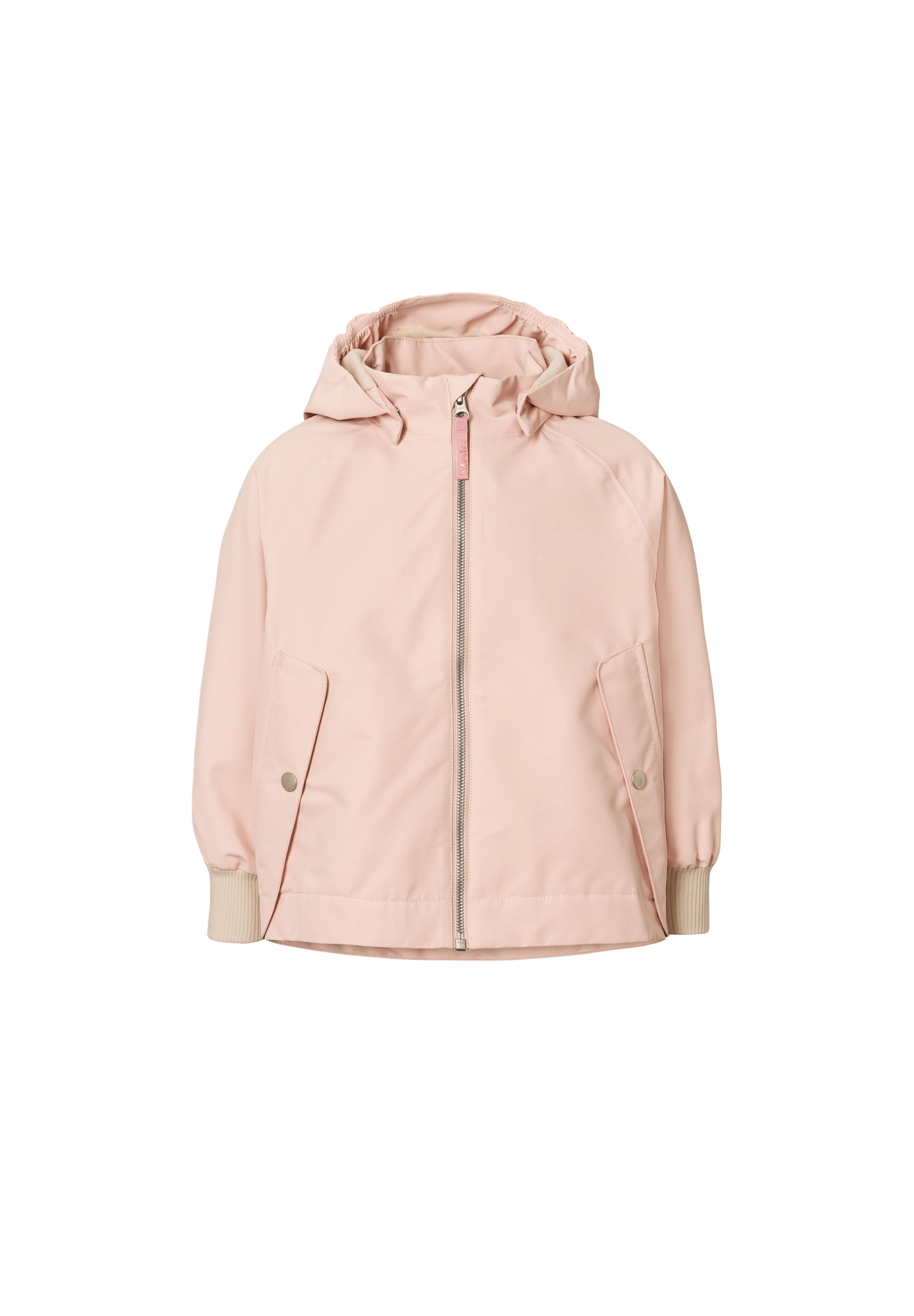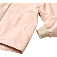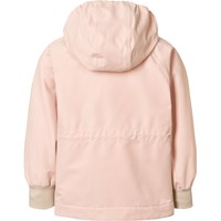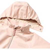 Lyserød jakke i genanvendt polyester, der beskytter mod vind og vand. Jakken har aftagelig hætte, lommer, lynlås med hagebeskytter og bred ribkant ved håndleddene. Taljen kan justeres indvendigt for en god pasform.