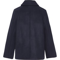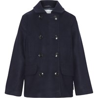 Horatio er en klassisk mørkeblå jakke i uldmix med krave, revers og knappelukning på fronten.