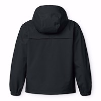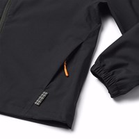Sort vind- og vandtæt jakke i genanvendt polyester med hætte. Jakken har en almindelig pasform, frontlommer med lynlås, justerbar elastik i bunden, elastik ved håndleddene, vandtætte sømme og lynlås med overfald, som holder vejr og vind ude.