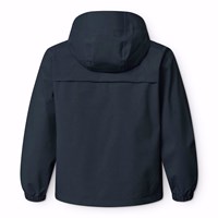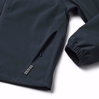 Mørkeblå vind- og vandafvisende jakke i genanvendt polyester med hætte. Jakken har en almindelig pasform, frontlommer med lynlås, justerbar elastik i bunden, elastik ved håndleddene, vandtætte sømme og lynlås med overfald, som holder vejr og vind ude.