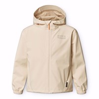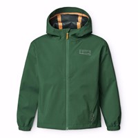 Grøn vind- og vandtæt jakke i genanvendt polyester med hætte. Jakken har en almindelig pasform, frontlommer med lynlås, justerbar elastik i bunden, elastik ved håndleddene, vandtætte sømme og lynlås med overfald, som holder vejr og vind ude.