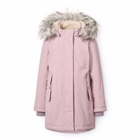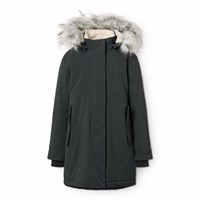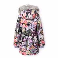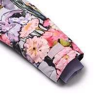 Vind- og vandtæt blomstret jakke i genanvendt polyester med praktisk lynlåslukning, høj krave og aftagelig hætte med faux fur kant. Jakken er knælang samt er designet med frontlommer og ribkant ved håndleddene som effektivt hjælper mod vind. Bagpå er der en stor refleks, der øger synligheden i trafikken. Jakken er foret med blødt, genanvendt polyesterfyld, som giver en jævn komfort og optimal varmeisolering.