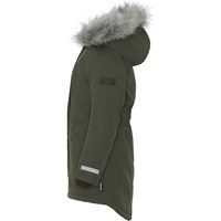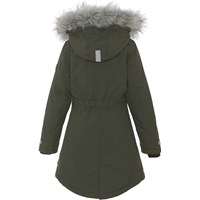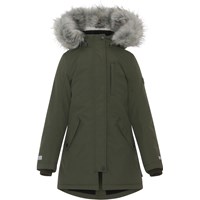 Peace er en funktionel og vandtæt parka vinterjakke i grøn. Peace er perfekt både til de ekstrem kolde og almindelige vintre, grundet dets utrolig høje åndbarhed samt isolering. Den høje åndbarhed er med til at hjælpe kropstemperaturen regulere sig og sørge for, at dit barn hverken bliver for kold eller varm. På varmere vinterdage kan barnet derfor nøjes med tynde lag under og på dage med voldsomme tocifrede minusgrader kan man supplere med et ekstra lag indenunder. Har du er stillesiddende barn vil Peace også være et oplagt valg. Jakken har aftagelig hætte med faux fur pelskant (som også kan tages af) og refleks, skjult lynlås med overfald, ærmegab med vindfang, tre frontlommer og elastik i ryggen for et mere fittet pasform. Jakken er lavet i et vindtæt, vandtæt og åndbart materiale med tapede sømme. Ydermaterialet er fremstillet af 59% recycled nylon, 3M™ Thinsulate™ foret er fremstillet af 78% recycled polyester og inderstoffet af 100% recycled polyester. Dette produkt har en vandafvisende PFC-fri imprægnering (indeholder f.eks. ikke PFOS, PFOA og lignende). Vandsøjletryk: 15.000 mm. Åndbarhed: 15.000 g/m2/24t.