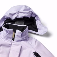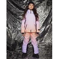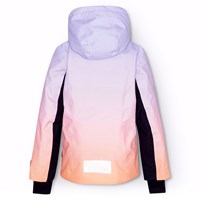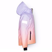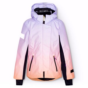 Den perfekte vind- og vandtætte skijakke i genanvendt polyester. Jakken er i orange, lyserød og pastellilla gradient farver, har en aftagelig foret hætte, vandtæt lynlås med overfald, der holder vinden ude. Jakken er udstyret med store reflekser, som sikrer synlighed i trafikken. Jakken har foret og vandtætte lynlåslommer, en lomme på ærmet til skikortet, samt en indevendig lomme. Jakken er ydstyret med vindfang omkring hoften og i ærmeåbningen med huld til tommelfingeren som sørger for at holde sne, vind og vand ude. Jakken er foret med fleece og 3M™ Thinsulate™, hvis lethed giver barnet en større bevægelighed.