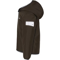 Lækker, foret jakke i vandtæt materiale. Jakken er i brun og har en aftagelig, fleeceforet hætte, lynlås ned langs fronten, lommer i siden samt refleks på den ene overarm og bagpå. Jakken er lavet i et vindtæt, vandtæt og åndbart materiale, har fleece i hætte og ned ad ryggen samt tapede sømme. Denne vare har en vandafvisende PFC-fri imprægnering (indeholder f.eks. ikke PFOS, PFOA og lignende). Vandsøjletryk: 5.000 mm. Åndbarhed: 5.000 g/m2/24t.