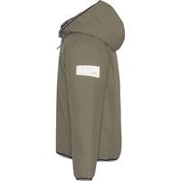Vandtæt jakke i mørkegrøn med tapede sømme og foring, der gør den yderst velegnet som regntøj i de kolde efterårs- og vintermåneder. Jakken kan samtidig også fungere som hverdagsovertøj i overgangsperioderne, hvor vejret kan være meget omskifteligt. Jakken har lynlås foran, en aftagelig, fleeceforet hætte, lommer i siderne samt reflekser bagpå og på det ene ærme. Vandsøjletryk: 5.000 mm. Åndbarhed: 5.000 g/m²/24t. Foret er fremstillet af genanvendt polyester.
