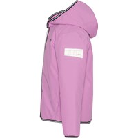 Vandtæt jakke i lilla med tapede sømme og foring, der gør den yderst velegnet som regntøj i de kolde efterårs- og vintermåneder. Jakken kan samtidig også fungere som hverdagsovertøj i overgangsperioderne, hvor vejret kan være meget omskifteligt. Jakken har lynlås foran, en aftagelig, fleeceforet hætte, lommer i siderne samt reflekser bagpå og på det ene ærme. Vandsøjletryk: 5.000 mm. Åndbarhed: 5.000 g/m²/24t. Foret er fremstillet af genanvendt polyester.