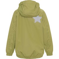 Waiton er en let og funktionel regnjakke i cedergrøn med nylonfor. Waiton har tildækket lynlås, som beskytter mod vind og regn, tapede sømme, aftagelig hætte og to frontlommer. Jakken har Molo's ikoniske stjerne refleks på bagsiden, som giver ekstra synlighed i mørket. En stor fordel ved dette regntøjsprodukt er også, at det er åndbart, så høj aktivitet ikke resulterer i en fugtig inderside. Dette produkt har en vandafvisende PFC-fri imprægnering (indeholder f.eks. ikke PFOS, PFOA og lignende). Vandsøjletryk: 5.000 mm. Åndbarhed: 5.000 g/m2/24t.
