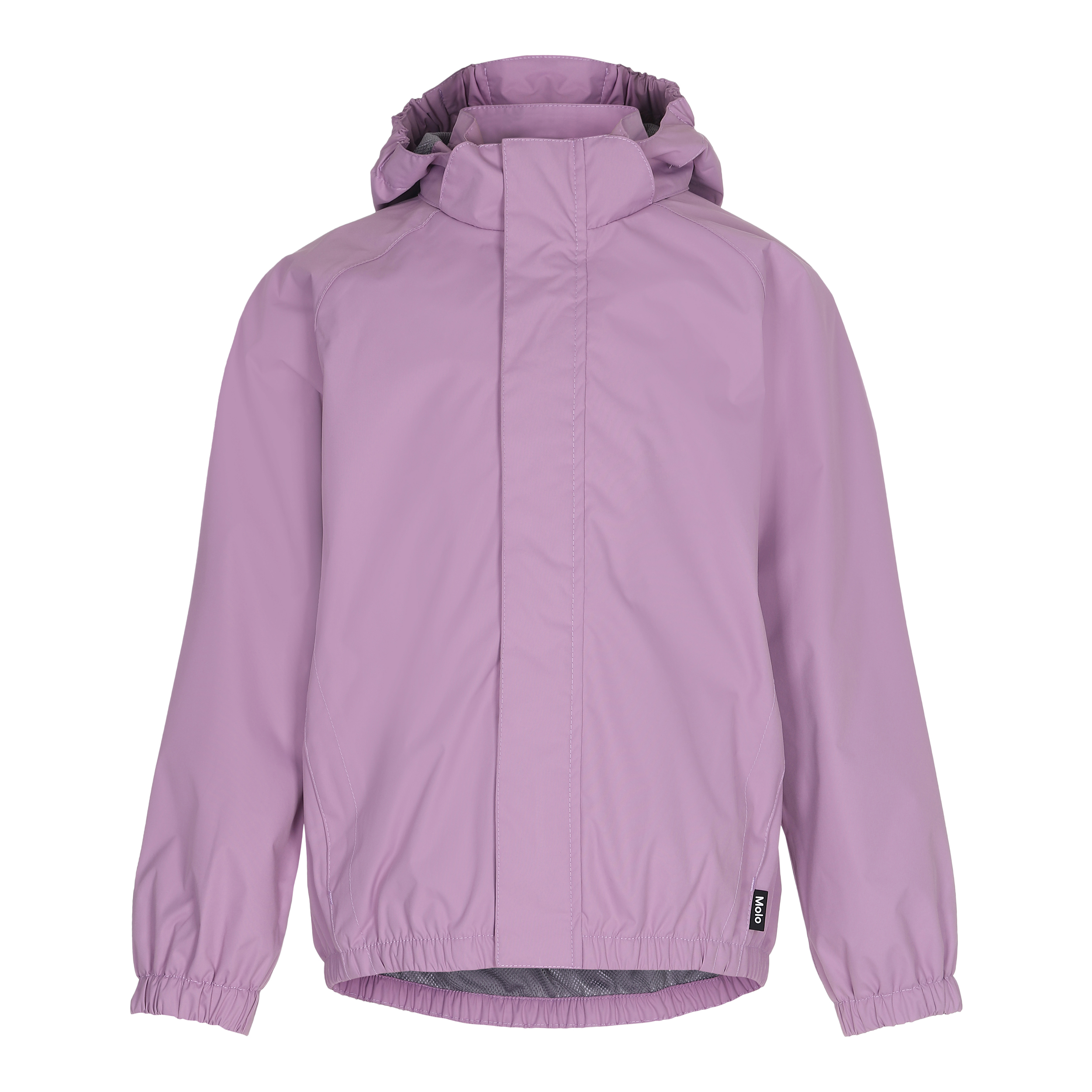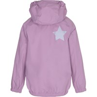 Waiton er en let og funktionel regnjakke i lys lilla med nylon foring. Waiton har tildækket lynlås, som beskytter mod vind og regn, tapede sømme, aftagelig hætte og to front lommer. Jakken har Molo's ikoniske stjerne refleks på bagsiden, som giver ekstra synlighed i mørket. Dette produkt har en vandafvisende PFC-fri imprægnering (indeholder f.eks. ikke PFOS, PFOA og lignende). Vandsøjletryk: 5.000 mm. Åndbarhed: 5.000 g/m2/24t.