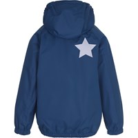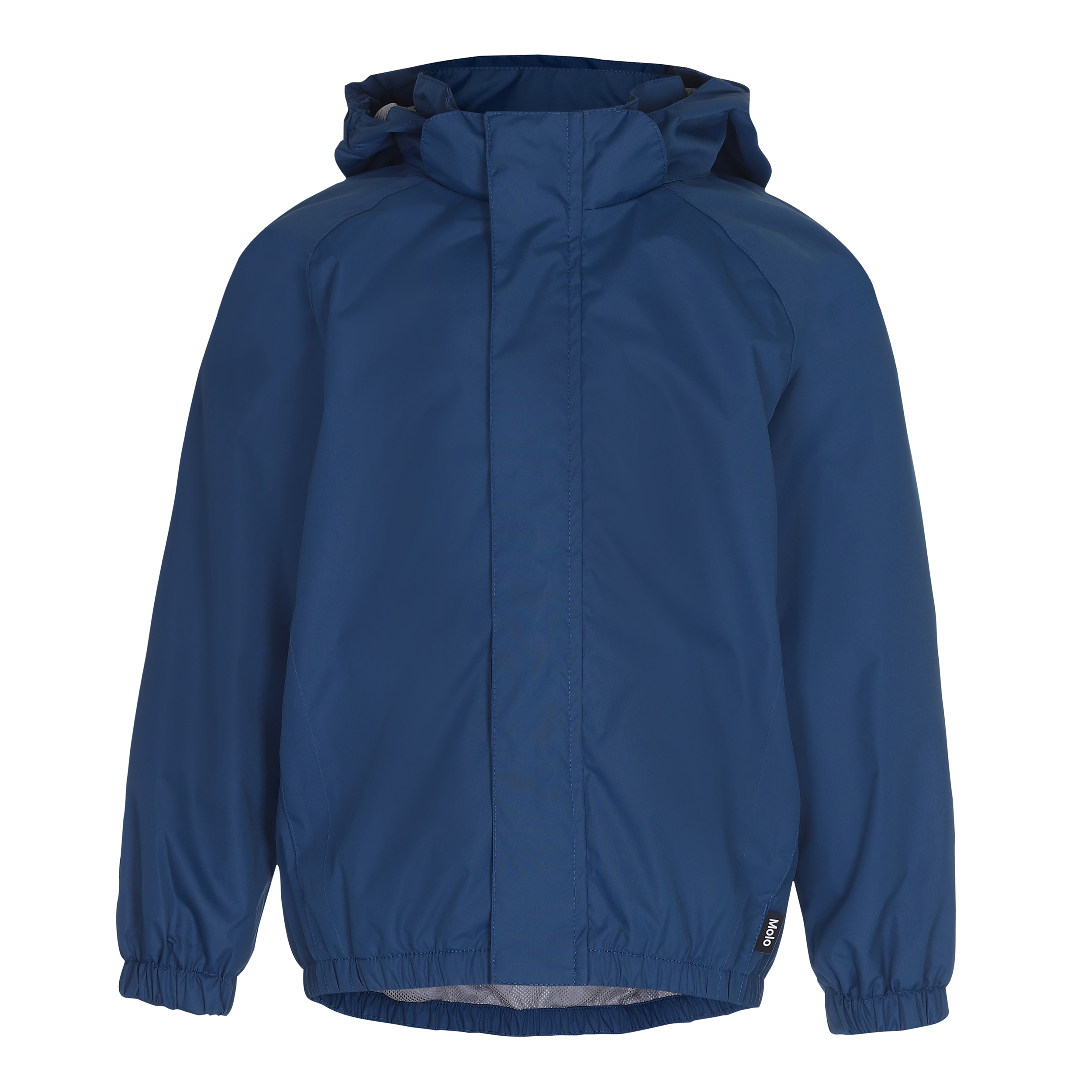Waiton er en let og funktionel regnjakke i blå med nylon foring. Waiton har tildækket lynlås, som beskytter mod vind og regn, tapede sømme, aftagelig hætte og to front lommer. Jakken har Molo's ikoniske stjerne refleks på bagsiden, som giver ekstra synlighed i mørket. Dette produkt har en vandafvisende PFC-fri imprægnering (indeholder f.eks. ikke PFOS, PFOA og lignende). Vandsøjletryk: 5.000 mm. Åndbarhed: 5.000 g/m2/24t.