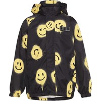 Waiton er en let og funktionel regnjakke med nylonfor i et multifarvet dyreprint. Waiton har tildækket lynlås, som beskytter mod vind og regn, tapede sømme, aftagelig hætte og to frontlommer. Jakken har Molo's ikoniske stjerne refleks på bagsiden, som giver ekstra synlighed i mørket. En stor fordel ved dette regntøjsprodukt er også, at det er åndbart, så høj aktivitet ikke resulterer i en fugtig inderside. Dette produkt har en vandafvisende PFC-fri imprægnering (indeholder f.eks. ikke PFOS, PFOA og lignende). Vandsøjletryk: 5.000 mm. Åndbarhed: 5.000 g/m2/24t