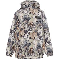 Waiton er en let og funktionel regnjakke med nylonfor i khaki med et charmerende hundeprint. Waiton har tildækket lynlås, som beskytter mod vind og regn, tapede sømme, aftagelig hætte og to frontlommer. Jakken har Molo's ikoniske stjerne refleks på bagsiden, som giver ekstra synlighed i mørket. En stor fordel ved dette regntøjsprodukt er også, at det er åndbart, så høj aktivitet ikke resulterer i en fugtig inderside. Dette produkt har en vandafvisende PFC-fri imprægnering (indeholder f.eks. ikke PFOS, PFOA og lignende). Vandsøjletryk: 5.000 mm. Åndbarhed: 5.000 g/m2/24t