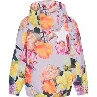 Waiton er en let og funktionel regnjakke i lyselilla med stort blomster print. Waiton har tildækket lynlås, som beskytter mod vind og regn, tapede sømme, aftagelig hætte og to frontlommer. Jakken har Molo`s ikoniske stjerne refleks på bagsiden, som giver ekstra synlighed i mørket. En stor fordel ved dette regntøjsprodukt er også, at det er åndbart, så høj aktivitet ikke resulterer i en fugtig inderside. Dette produkt har en vandafvisende PFC-fri imprægnering (indeholder f.eks. ikke PFOS, PFOA og lignende). Vandsøjletryk: 5.000 mm. Åndbarhed: 5.000 g/m2/24t.