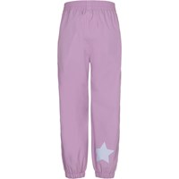 Waits er et par lette og funktionelle regnbukser i lys lilla. Regnbukserne har elastik i benåbningen og Molo's ikoniske refleks stjerne på det ene ben. Regnbukserne kan blive brugt i alt slags vejr, da materialet er vandafvisende og åndbart, samt har tapede sømme. Dette produkt har en vandafvisende PFC-fri imprægnering (indeholder f.eks. ikke PFOS, PFOA og lignende). Vandsøjletryk: 5.000 mm. Åndbarhed: 5.000 g/m2/24t.