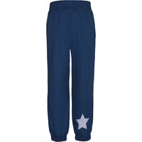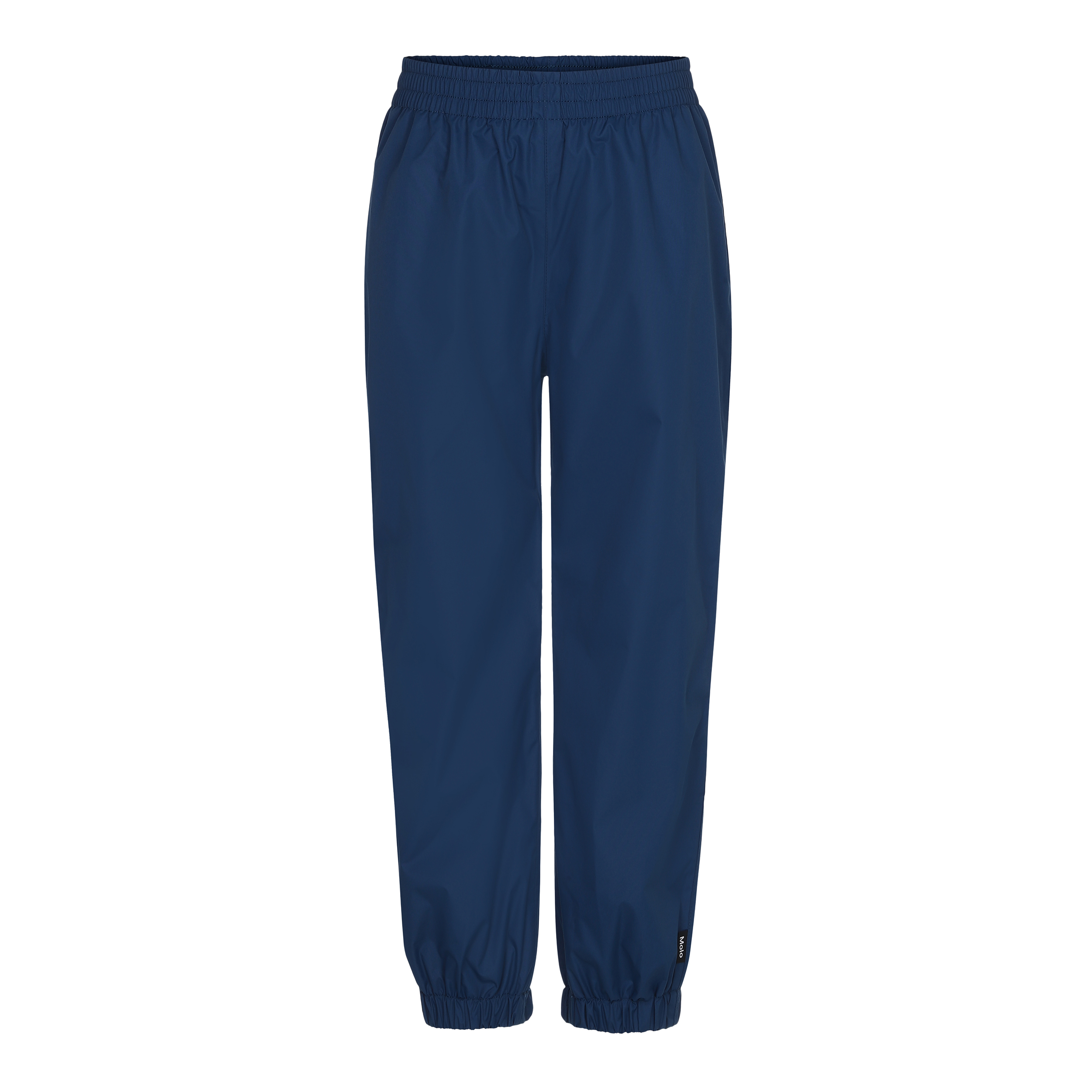 Waits er et par lette og funktionelle regnbukser i blå. Regnbukserne har elastik i benåbningen og Molo's ikoniske refleks stjerne på det ene ben. Regnbukserne kan blive brugt i alt slags vejr, da materialet er vandafvisende og åndbart, samt har tapede sømme. Dette produkt har en vandafvisende PFC-fri imprægnering (indeholder f.eks. ikke PFOS, PFOA og lignende). Vandsøjletryk: 5.000 mm. Åndbarhed: 5.000 g/m2/24t.