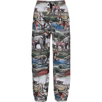 Waits er et par lette og funktionelle regnbukser med print af fortidens dyr i flotte jordfarver. Regnbukserne har elastik i benåbningen og Molo's ikoniske refleks stjerne på det ene ben. Regnbukserne kan blive brugt i alt slags vejr, da materialet er vandafvisende og åndbart, samt har tapede sømme. Dette produkt har en vandafvisende PFC-fri imprægnering (indeholder f.eks. ikke PFOS, PFOA og lignende). Vandsøjletryk: 5.000 mm. Åndbarhed: 5.000 g/m2/24t
