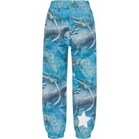 Waits er et par lette og funktionelle regnbukser i blå med forhistoriske dyr, som levede under havets overflade. Regnbukserne har tapede sømme, elastik i benåbningen og i taljen, som kan reguleres samt Molo`s ikoniske refleksstjerne på det ene ben. En stor fordel ved dette regntøjsprodukt er også, at det er åndbart, så høj aktivitet ikke resulterer i en fugtig inderside. Dette produkt har en vandafvisende PFC-fri imprægnering (indeholder f.eks.ikke PFOS, PFOA og lignende). Vandsøjletryk: 5.000 mm. Åndbarhed: 5.000 g/m2/24.