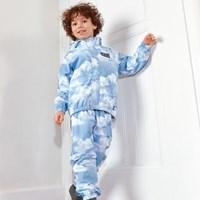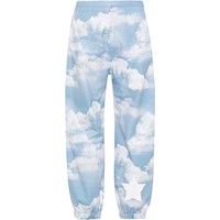 Waits er et par lette og funktionelle regnbukser i et lyseblåt skyprint. Regnbukserne har tapede sømme, elastik i benåbningen og i taljen, som kan reguleres samt Molo's ikoniske refleksstjerne på det ene ben. En stor fordel ved dette regntøjsprodukt er også, at det er åndbart, så høj aktivitet ikke resulterer i en fugtig inderside. Dette produkt har en vandafvisende PFC-fri imprægnering (indeholder f.eks. ikke PFOS, PFOA og lignende). Vandsøjletryk: 5.000 mm. Åndbarhed: 5.000 g/m2/24