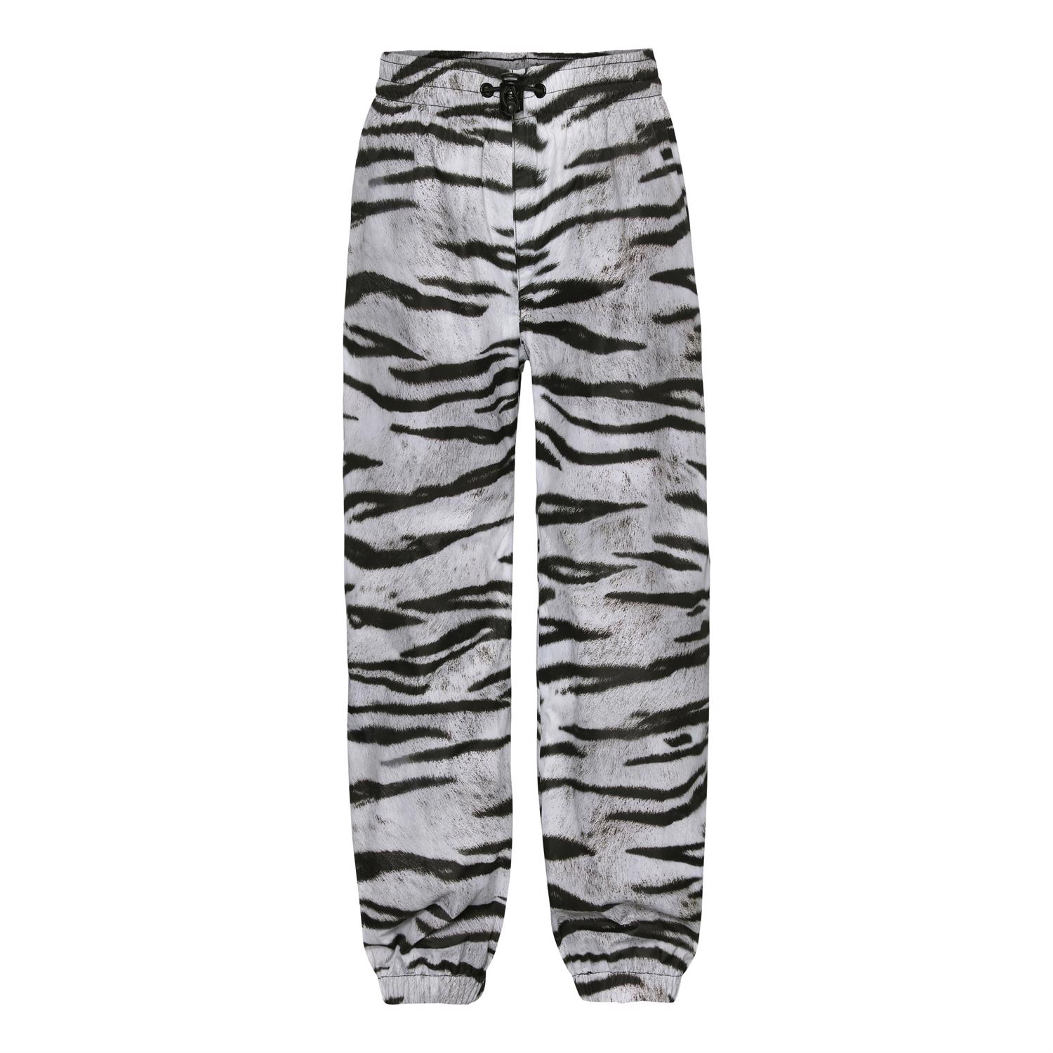 Waits er et par lette og funktionelle regnbukser i sort og hvidt tiger print. Regnbukserne har elastik i benåbningen og Molo's ikoniske refleks stjerne på det ene ben. Regnbukserne kan blive brugt i alt slags vejr, da materialet er vandafvisende og åndbart, samt har tapede sømme. Dette produkt har en vandafvisende PFC-fri imprægnering (indeholder f.eks. ikke PFOS, PFOA og lignende). Vandsøjletryk: 5.000 mm. Åndbarhed: 5.000 g/m2/24t